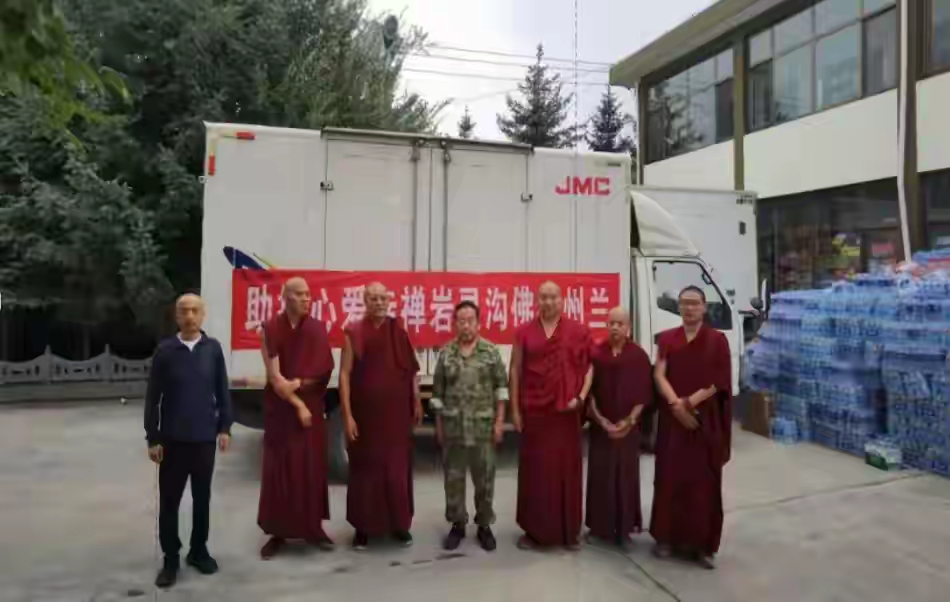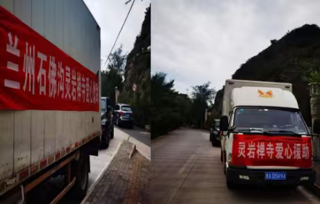 连夜的寺院灯火通明。僧人们与义工们并肩忙碌,将紧急采购的桶装方便面、面包、油锅盔逐一清点装车。手电筒的光束在物资堆里穿梭,僧袍的衣角沾了灰也顾不上拂去,当印有 "兰州石佛沟灵岩禅寺" 字样的车辆整装待发,车头的灯光刺破夜幕,像一束希望的火炬,直指灾区方向。
