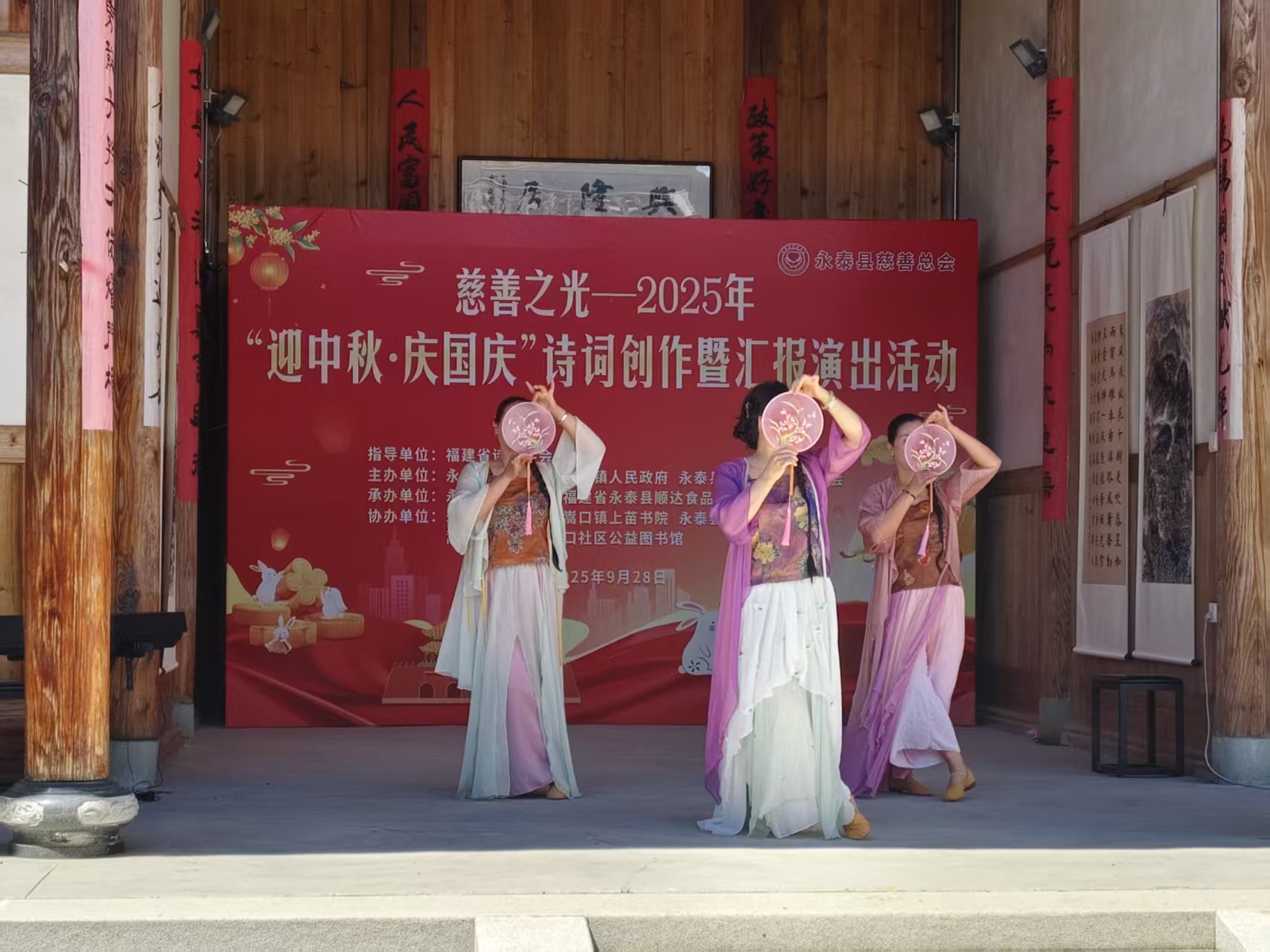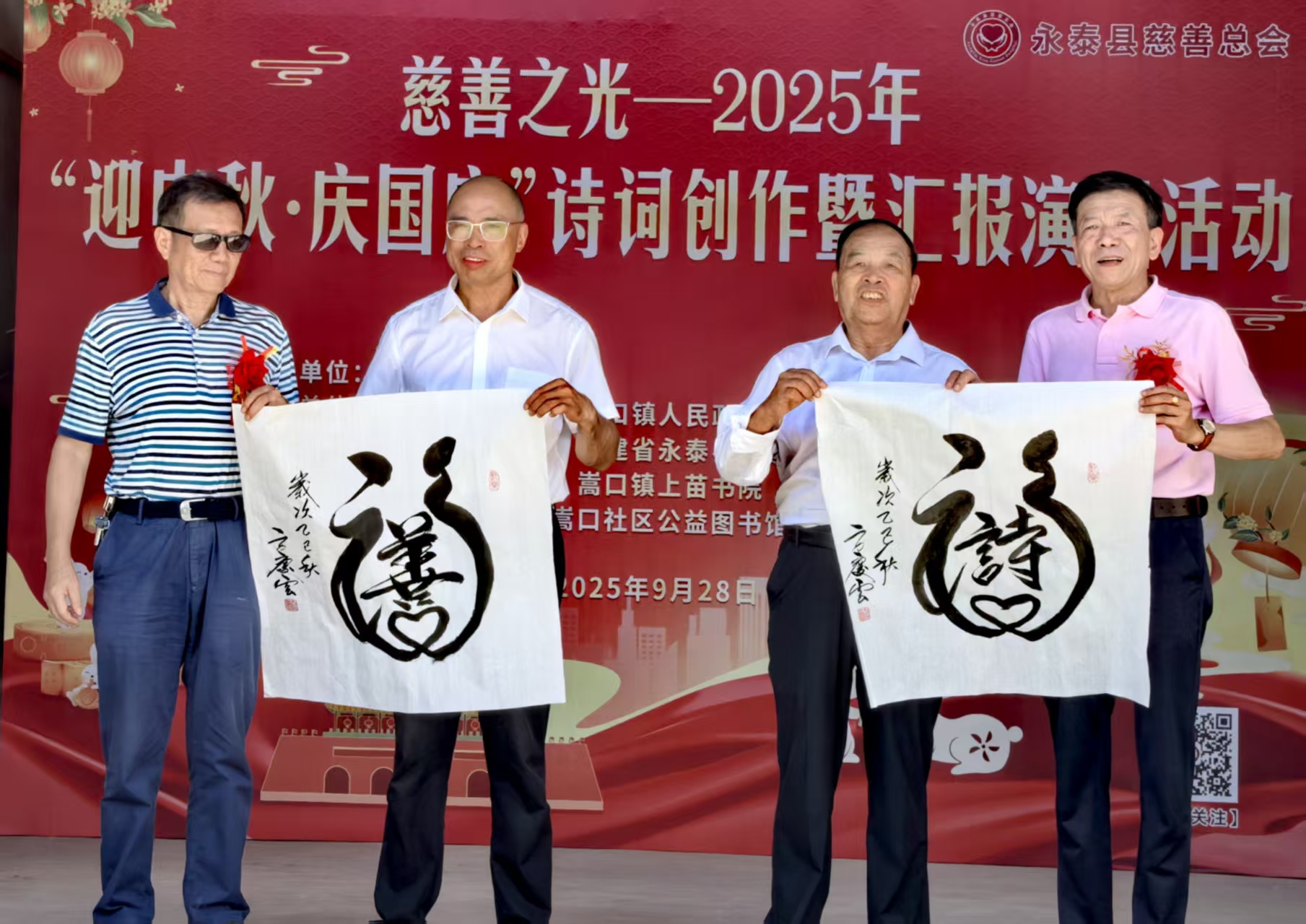 月到中秋分外明,人间温情暖人心。9月28日,在金风送爽、丹桂飘香的美好时节,千年古镇嵩口迎来了一场别开生面的文化盛会——2025年嵩口镇“中秋慈善之光”诗词吟唱会。此次活动由永泰县慈善总会、嵩口镇政府主办,永泰县嵩阳诗社、永泰县顺达食品有限公司承办,将传统文化与公益精神完美融合,为古镇增添了一抹温暖而绚丽的色彩。