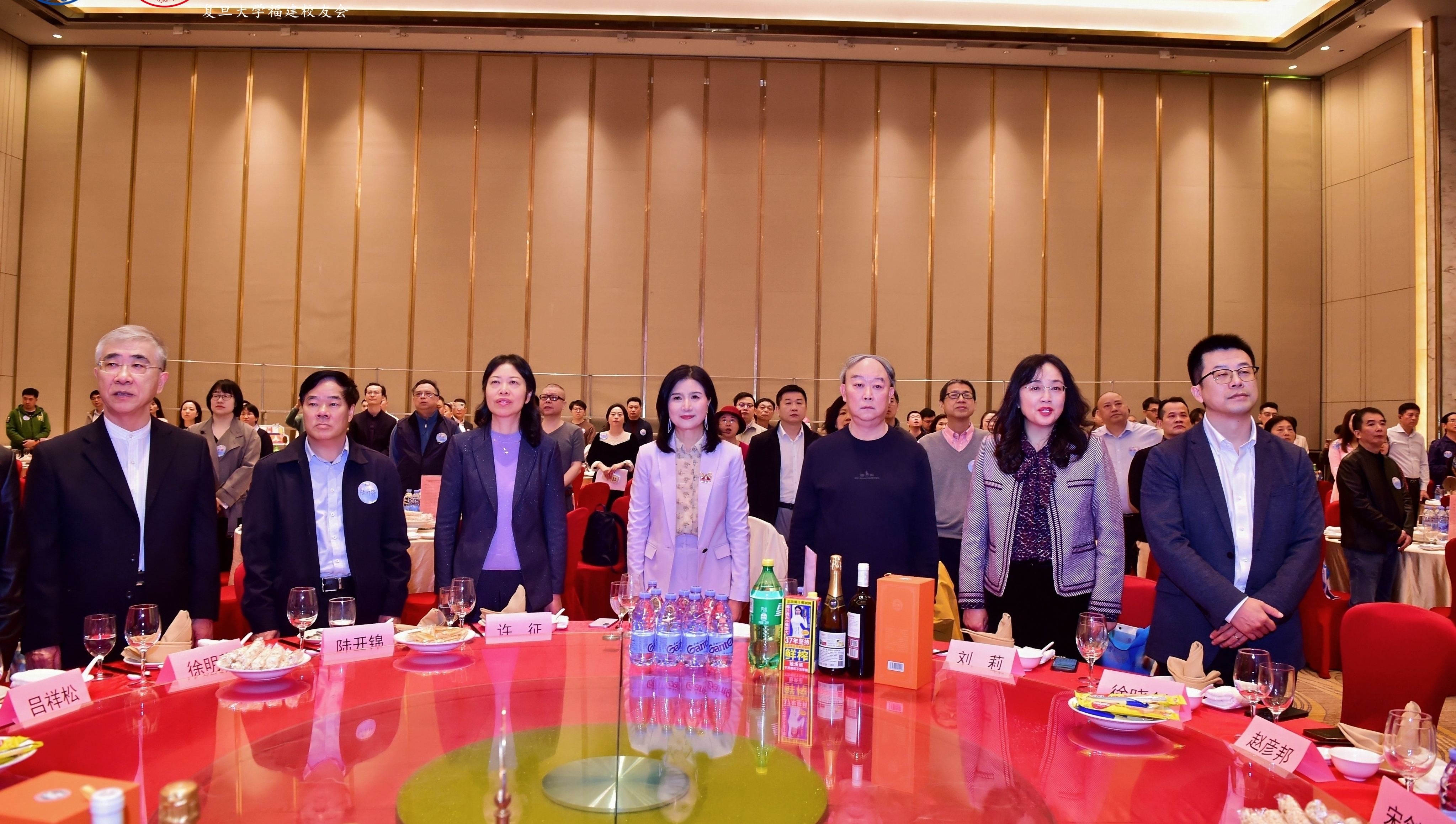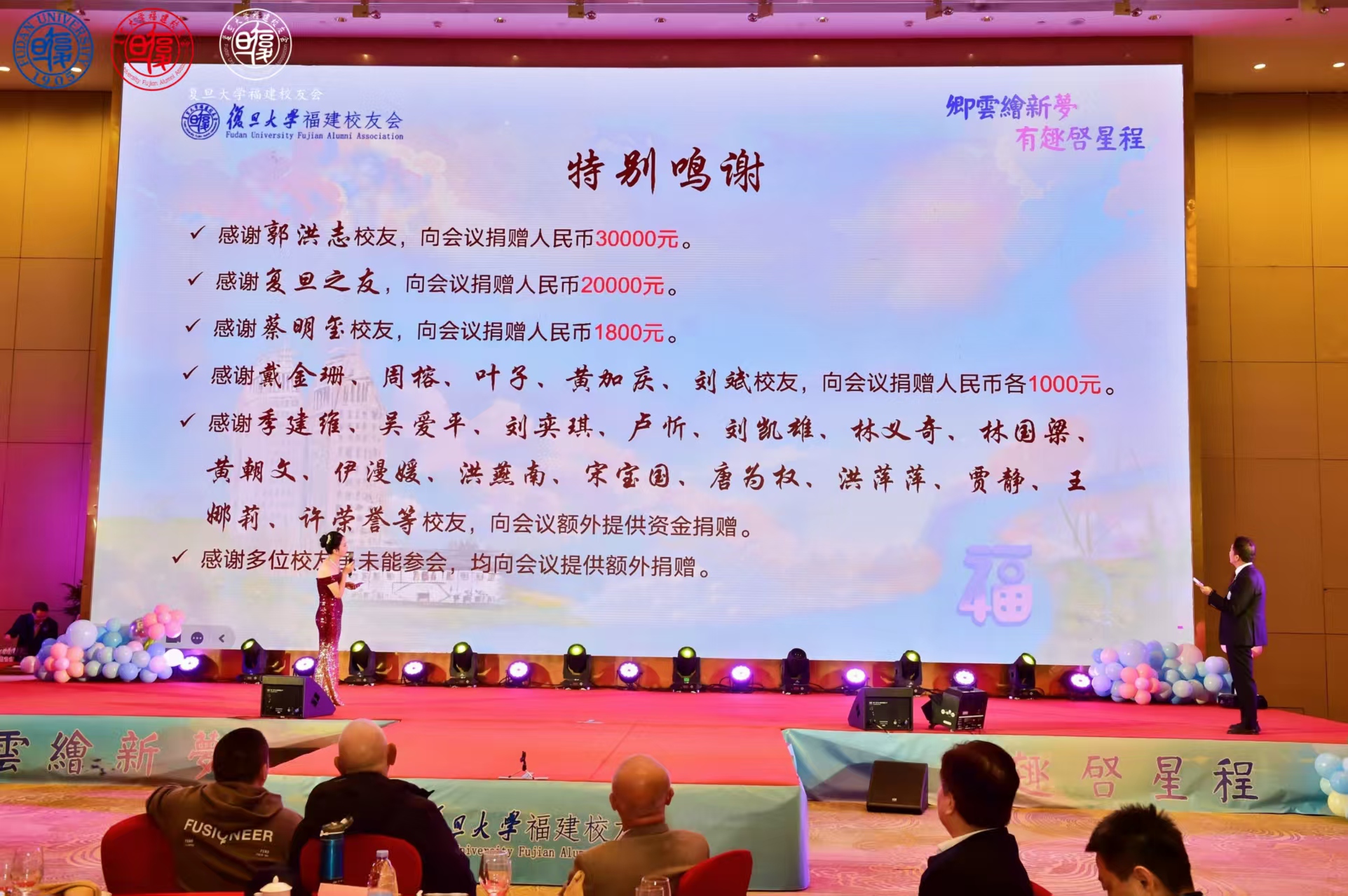 现场气氛热烈非凡,嘉宾阵容强大且多元。母校复旦大学常务副校长许征等领导亲临现场,这一举动充分体现了母校对福建校友会的重视与关怀。复旦大学兄弟校友会的嘉宾也远道而来,彰显出全国复旦校友组织紧密联动的格局。福建省外大学校友会联合会嘉宾的出席,体现了区域校友组织间友好交流与合作的良好态势。此外,兄弟高校校友会代表也到场祝贺,复旦大学北京、上海、深圳、贵州、河南校友会和上海交大福建校友会还发来了贺信,屏幕播放着兄弟校友会的祝福,温暖了每一位校友的心。