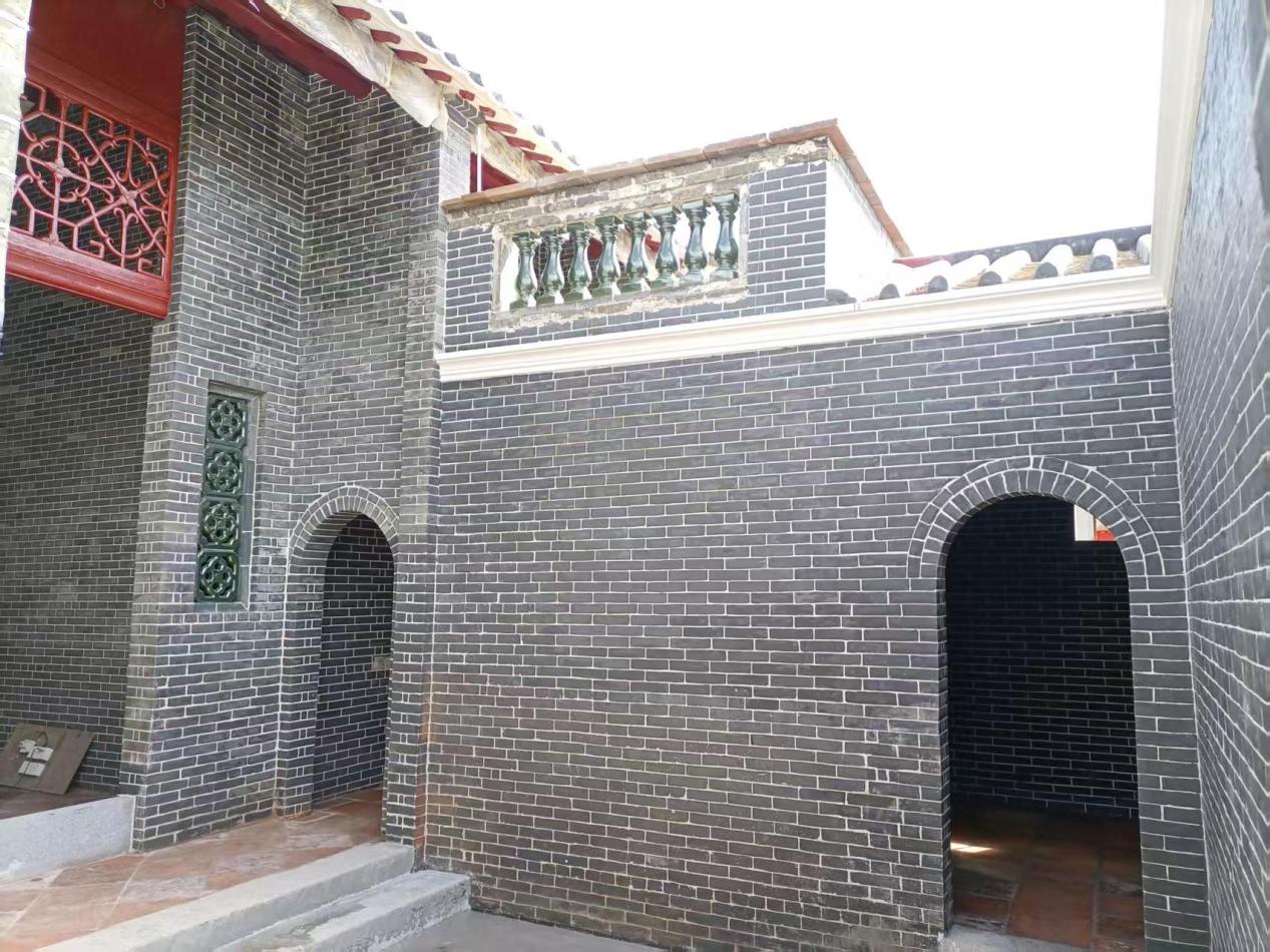 谭镳故居修缮本次修缮秉持“修旧如旧、保持原貌”还原历史真相的原则,在施工前相关部门对故居内原旧物一一详细拍照记录,随后在修复过程中要求施工人员严谨对标还原。故居屋内墙体则采用画砖缝工艺,外墙经水磨平整后施以钩缝处理,以青砖白灰缝呈现。为什么优先选择这种做法?施工部门表示:一方面寓意“青出于蓝而胜于蓝”,象征新会侨乡当代学子科举高中;另一方面也寄托着“规规矩矩做人,明明白白做事”的为人处世之道。当地文史专家谭根瑞先生表示:从生活和风水学角度看,青砖能在雨天或潮湿环境中吸收水分,待到晴朗天气再释放湿气,这一呼一吸之间,也契合传统风水理念,令谭镳故居成为冬暖夏凉宜居民宅,这样的修复设计也成为本工程一大亮点之一。当地群众参观修缮后的谭镳故居均一致表示:百年故居如今焕然一新,重现一代乡贤往日家居之风采,充分彰显“满堂吉庆”的氛围;另外,修复后的故居新貌与屋檐板设计图案合切,并呼应主题;故居青砖白灰勾勒如画,不仅是一座建筑的美学符号,更承载着教育强国的精神理想与历史使命,谭镳故居修缮效果意义深远,成为一处凝聚新会文化记忆与教育灵魂的重要场所。
