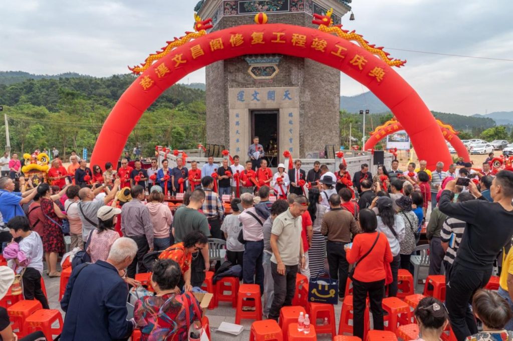 图为海内外乡亲为文昌阁修复工程竣工剪彩
